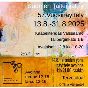 Osallistuin ensimmäistä kertaa Suomen Taiteilijat ry:n 52. vuosinäyttelyyn Kaapelitehtaalla elokuussa 2020 teoksellani ”Minä ja tasapaino”, ja sen jälkeen olen osallistunut moniin yhteisnäyttelyihin.